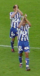 さて、そんな中、スタメン発表が以下のように発表になります。もりあがってまいりました!右にあるのが、各地の途中結果をリアルタイム(!)で表示してくれるボード。AとかBとかなので「どことどこ?」というのが見ただけではわかりません、途中経過の放送では言ってくれますが。Aの対戦がどことどこかは、実はプログラムの裏表紙にはのっています。そんな裏表紙をスキャンしたのは<こちら>。フォーメーション表やイエロー累積などもここで確認。ニック、まだイエロー1枚なのね、というかIFKそのものがカードが少ないチームなのでしょう(天使ちゃんだから(笑))。そして、Orebroと比べてみるとおわかりになるように、IFKってほんと選手数少ない!2チーム組むのぎりぎり?みたいな・・・なので、Bチームの試合のある日の練習人数が6人とかになってしまうのか。
