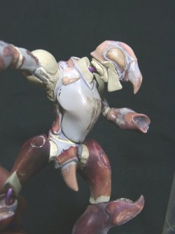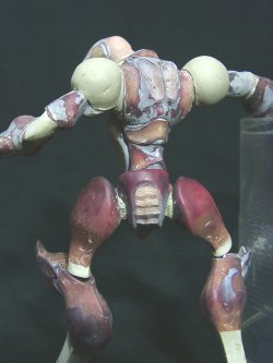 背面です。 肩は一回り大きくしています。 腰下部のフィン状のモールドは、スカルピーで製作しました。 |