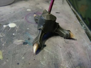 今回の再販で改修された足首です。 塗装は全部ラッカー筆塗り 基本的にブレンディングで塗装 最終的にドライブラシも使いましたが、安物の怪獣っぽくなるので時間に余裕があれば避けたいところ |