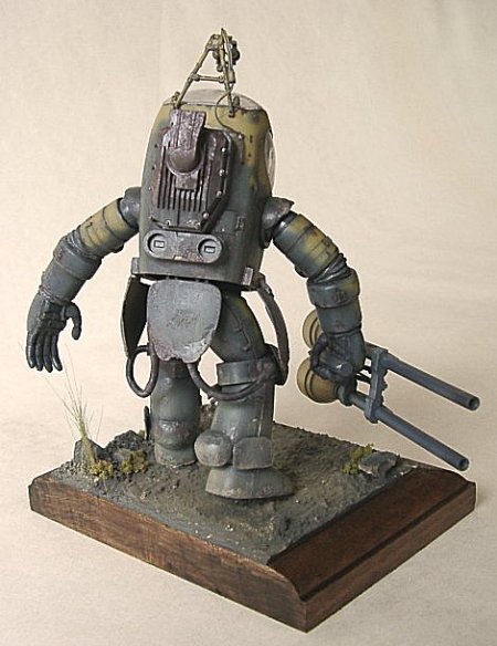 | ライトニング・ツーさんのサイトで行われたPKA/ハインリヒコンペ参加作品です 主な改修点 キャノピーを塩ビ板からヒートプレスにて製作、手首をMGザクのものを加工流用 パイロットのヘルメット、表情、スーツの変更、ノイパンラックのでっち上げ 大きな改造は避け、基本工作と細部の作りこみに重点をおきました カラーリングは塗装カードの第二夜間強襲連隊 隊長ゲルハルト・ラル中尉機 使い込まれた感じにしたかったので少々大げさなウェザリングを施してます マーキングは塗装&手描きです デコパは市販品を半分にしただけ 足元のトカゲはスカルピーによるスクラッチです |