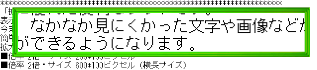 2倍拡大倍率2倍で表示します。 画像処理など、一部分を拡大したいときなどに便利です。 サンプル画像 ![]() |