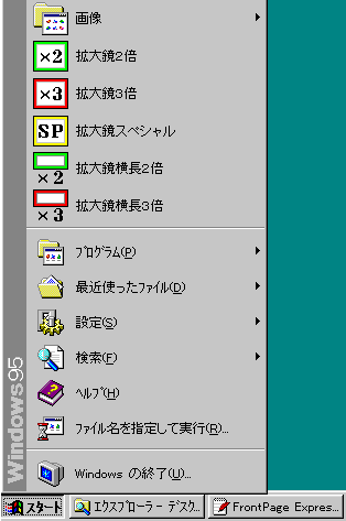![]() このように、「スタートメニュー」に「拡大鏡」のショートカットをつくり、ここから起動するようにして下さい。 自分でショートカットが作れない場合は「セットアッププログラム」を用意しておりますので、こちらをダウンロードして下さい。すべて自動的に設定されます。 |