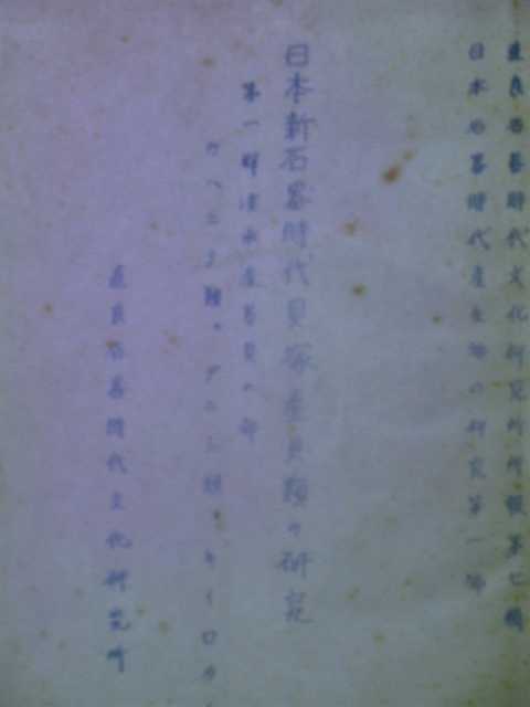 (1)そして、この写真の第七輯が最後のものとなった。この「所報」は第一輯から第二輯まではコンニャク版であり、第三輯からは謄写版となった。第一輯の筆跡と第七輯の筆跡は全く別人のものである。私は第一輯は手に取ってみたことはないが、坂詰秀一先生の労作『太平洋戦争と考古学』の35ページに写真が載っており、それとこの第七輯を比べる限りにおいては、第七輯の文字が非常に整っているのに対して、第一輯のものは明らかに別人のものである。直良三樹子さんによれば、直良石器文化研究所開設の際にその開設趣意書を音夫人が清書して謄写版で印刷してから、諸研究者に宛てて送付した(2)というから、この第七輯も音夫人に手によるものかも知れない。そして、第一輯は直良先生ご自身がコンニャク版印刷をされたといい、その当時四月に出産を控えた音夫人も製本に協力したという。直良先生の著作の覆刻に尽力されておられる春成秀爾先生は『近畿古代文化叢考』の覆刻の際に第一輯については併せて収録されたが、その際にこの第七輯についても行方を探索された。しかし、東大、京大にも所蔵されておらず、発見することが出来なかったという(3)今回の発見は縄文時代の研究史のなかでも非常に重要な文献であり、内容の検討再評価が待たれるものである。直良石器文化研究所所報