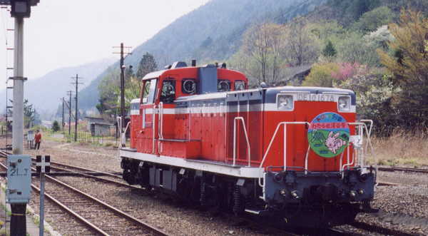 さて、今回のオフの目的でもある、トロッコ列車に乗車します。私達が足尾駅に到着したときは、11時33分に大間々駅を発車したトロッコが間藤の方を向いて停車していました。ここにはSLのような転換器がないので、まず列車ごと間藤方面に行き、バックして大間々方面へのホームに到着し、牽引機の方は切り離して間藤方面に進み、先ほどまで止まっていた線路を経由し、大間々方面から客車と連結する、というまるでパズルのような光景でした(爆)。そして、14時22分、トロッコ列車は大間々へ向けて発車しました。足尾まで風景を楽しむどころではなかったので、じっくり眺めることにします。