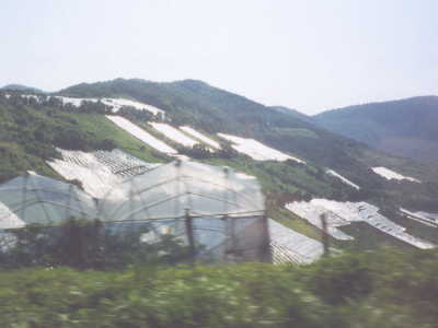 どうにか発車時刻の7時24分までに東京駅に着く事ができ、「つばさ」113号の指定席に腰掛けます。『旅行記3.Long Way Home』のときにもこの列車を使用し、しかも同じ400系を塗り替えたものでした。このときを思い出しながら、2日前に来た道をそのまま行き、山形からノンストップで新庄へ向かいます。前回は一面雪景色だったために、今回見える風景はそのときと変わって畑が広がっていました。また、山肌にはぎっしりとビニールハウスが並んでいました。