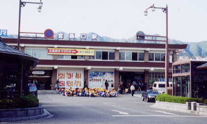 バスにて岩国駅へ到着した後、13時46分発、白市行き普通列車(2450M)に乗って宮島への接続駅・宮島口駅へと向かいます。列車は20分ほどで宮島口駅へと到着しましたが、平日にもかかわらずかなりの客が下車していきます。これが休日だったら・・・と思うとぞっとしますね。本来は次の日(11月3日)に行こうかと考えていたのですが、明日のこととセットで正解、と感じた選択となりました。