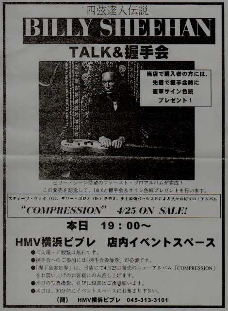 2001.04.26 この日は横浜にてBillyさんの初のソロアルバム「Compression」発売イベントが行われました。場所は2カ所。