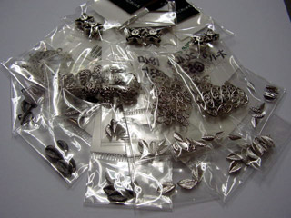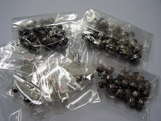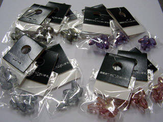 | 今回は作者の都合(イベント参加など)により作品が1点も出来なかったので、 大阪で仕入れたパーツの数々をご紹介いたします。 001番は、天然石の数々です。(@ロフト) 熊本では、なかなか連で売ってないので、ドキドキしながら入手しました。 002番は、チェコビーズの数々です。(@ハンズ) 熊本では、なかなか見ない洋なし型のパーツを、色違いで入手しました。 003番は、メタルパーツの数々です。(@ロフト) 熊本では、なかなか見かけないデザインで、うれしくてたくさん入手しました。 004番は、メタルパーツの数々です。(@オーパ) 熊本では、なかなか見かけないデザインで、うれしくてたくさん入手しました。 4月分の更新に間に合わなかったので、次回、どんな作品に化けるか、 |