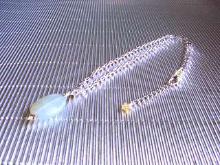 ネックレスです。(ハート型カン留め・チェーン38cm+アジャスター6cm) ラブラドライト(ブルーグレー)調和・穏やかな心・記憶 |