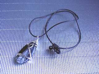 ネックレスです。(皮紐+アジャスター付き) ラブラドライト(ブルーグレー)調和・穏やかな心・記憶 色でオーダーを頂き、実際に石を見てもらって選ばれた石で作らせていただきました。 |