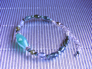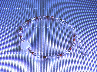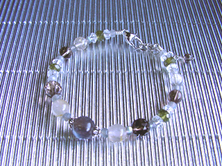 ブレスレットです。(アジャスター付き) ラブラドライト(ブルーグレー)調和・穏やかな心・記憶 色でオーダーを頂き、実際に石を見てもらって選ばれた石で作らせていただきました。 (他にルチルクォーツ・グリーンガーネット・スモーキークォーツなど使用) |