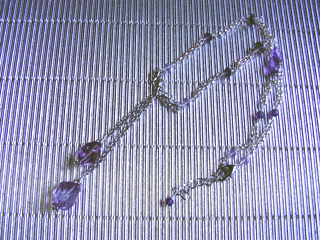 色指定でオーダーを頂いて作ったネックレスです。(ハート型カン留め・チェーン38cm+アジャスター6cm・下がり飾り部分8cm) クォーツ【アメジスト】(パープル)決断力・愛情・集中力・調和・第六感・献身・冷静・覚醒・精神力・豊かな感受性 |