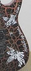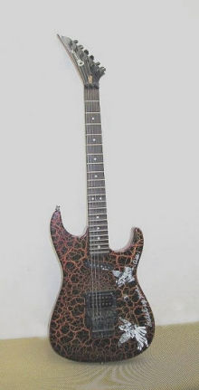 すごい模様のシャーベルは16歳の時に買ったものです。 もう10年もつきあっているんですね〜。 このギターはとくに何もしていません。 ボディーに描かれた絵は友達にかいてもらった絵です。 これフリーハンドなんですよ。うまくないですか? このギターは最初、友達が買うと言っていた物なんですけど カタログ見てたら俺がほしくなって買ってしまったもんです。 あとから、かなり文句言われました(笑) あとはスキャロップにしたんですけどっ めんどくさくなって9フレットまでしてやめました。 このギターは最近ぜんぜん弾かなくなりましたが、 たまにハムバックサウンドが聞きたいときに使ってます。 ![]() |