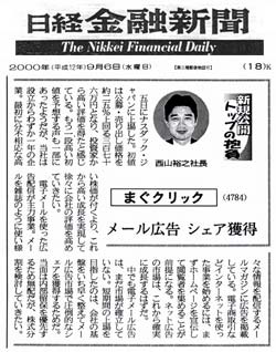 新規公開 トップの抱負 〜西山 裕之社長〜 まぐクリック メール広告シェア獲得 |