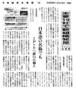 主要19社で新組織発足 ドメイン名登録 日本の名称でもIPv6へ移行に備え |