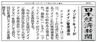 インターキューは二十日、ネット上の住所にあたるドメイン名の管理事業を来年から始めると発表した。最後に「.info」(ドットインフォ)が付くドメイン名を管理する。