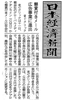 | 懸賞付きメール 広告事業に進出 まぐクリック |