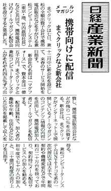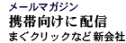 まぐクリックは七日、兼松の全額出資子会社で携帯電話販売などを手がける兼松コンピューターシステム(東京・港、竹内政明社長)などと共同で、携帯電話向けのメールマガジン配信会社を設立すると発表した。十二月中に新会社を設立して、来春のサービス開始を目指す。