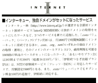 インターキュー(株)(http://www.interq.ad.jp/)が運営する会員制インターネット接続サービス「interQ MEMBERS」は独自ドメインの取得をセットにしたコースなど、3つのサービスを新たに追加した。「.comバリューパック」(パーフェクトプランF38)は、月3800円で時間無制限にインターネットに接続できるほか、.com .org .netのいずれかの独自ドメインの取得・運用と、そのドメインのメールアドレス1つ、商用利用も可能な100MBのWebスペースがセットになったコース。「思いやりプランJ3」は3時間まで月390円(超過分は10円/分)、「IP接続つなぎ放題プランP19」は、NTTのIP接続サービス「フレッツ・ISDN」に対応したサービスで、月額固定1980円となる。また、.comバリューパックでもオプション料金100円の追加で、IP接続に対応する。 |