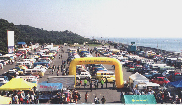AM10:00頃ディーラーブース付近から見たVW専用駐車場