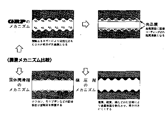それは非常に強靭で高荷重に耐えることが出来る超潤滑フィルムです。成分が摺動部で発生するエネルギーを吸収し共晶膜の形成を進行します。したがって、過酷な条件(高速回転、高荷重、高温等)になればなるほど、時間と共に、より強靭な潤滑被膜となります。