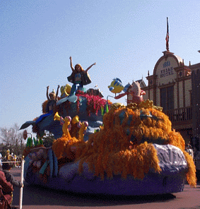 | めちゃくちゃ重いです。本当にごめんなさい | ディズニーファンタジーオンパレードは、パーク10周年を むかえた1993年4月15日にディズニーパーティグラの 後を継ぐ形でスタートしました。 ディズニーランドブラスを先頭に、ミッキーの乗った 「オープニングユニット」が見えてきたらパレードの スタート!ディズニーを代表する10の映画から それぞれのテーマ曲に乗ってキャラクター達が登場しました。 ここの写真にある8つのフロートのほかに、 「ダンボユニット」「アリスユニット」「メリーポピンズユニット」が あったのですが残念ながら写真を撮れていません。 今でもこの「オープニングユニット」を見るとあの音楽が 頭の中でよみがえってきますね(^^ とにかく、一度に多くのキャラクターに会えるということで ものすごく人気の高いパレードだったことは間違いありません。 |