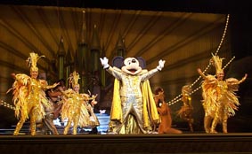ここで見ることのできるストーリーは5つ。 「シンデレラ」や「ピノキオ」の後を継ぎ、 いまやディズニーを代表する映画となった 「ポカホンタス」「ライオンキング」「アラジン」 「リトル・マーメイド」そして「美女と野獣」。 この全てを目の前で楽しむことができます。 |