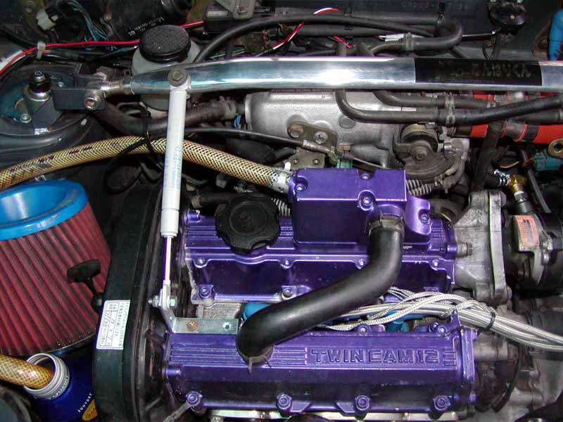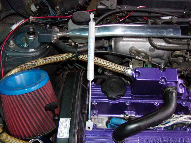 こうやって、L型ステーでエンジンとタワーバーで固定しました。