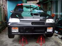 ワークスバンパーとワークスボンネットをアルトの角目に合わせて加工