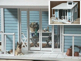 ![]() 「Seaside Cottage」 W31×H30×D31cm 製作期間 97/08〜98/01 ローラ・アシュレイのインテリア本に載っていた海辺の 別荘に憧れて作ってみました。シンプルだけれども おしゃれな感じに仕上げたつもりです。 一番苦労したことは壁・屋根の板を一枚一枚貼り合わせる のに時間がかかったことです。自慢の箇所は正面の扉。 透明プラ板を使用してガラスの感じを 出し、左右それぞれを折り畳むようにして開きます。 |
