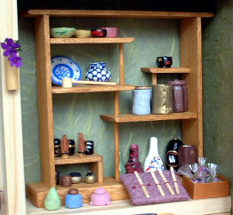 右の棚のUP画像 買った物は右の棚「左」上から2番目に ある網目柄のつぼのみです。 by つっつ CHIEZOさんのHPで つっつさんのこの作品が細かく掲載されて います。チョコエッグの猫ちゃんが 顔を覗かせたりしてとても可愛いの(^_^) |