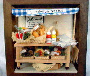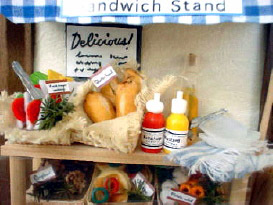 「sandwich stand」13.6×13.6cm サンドはすべて10?前後で作ってます。 庭のローズマリーをcutしてサンドやパンの 隙間を埋めました。 |