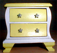 「チェスト」1/12サイズ こちらもマイドールハウスの家具です 子供部屋におく家具として作りました。 子供部屋のテーマが「星」だったので、 星形のビーズを取っ手部分に付けました。 ¥100ショップの小物は素材の宝庫! 特にビーズやアクサリーなどは、かなり 重宝します。 by せいたん (HPはこちら) |