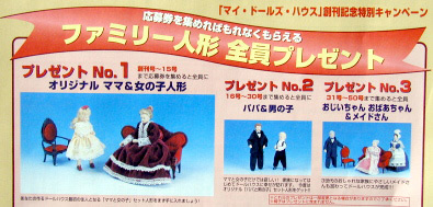 定期購読では2週分が纏めて来るんだけど、製作に追われそうで ちと、恐いな〜〜(笑) でも、壁1枚足りない・・・って事にもなりたくないしね。 何冊か続けて買うともれなく貰えるDollもあるのよね・・・ |