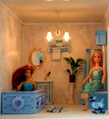 バスルームにも何故かアイボ(笑) この部屋の住人がちょっと入れ替わり ました。右側に居るのは、マテル 70年代の「ロックフラワー」です。 |