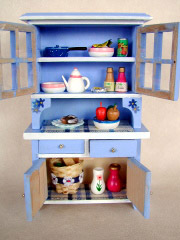 キッチンの家具のイメージはお花とブルーを基本的に念頭に置いてます。 ブルーと白で色を塗った後に、それだけでは淋しいので シールのお花型の部分を切り出してアクセントとして貼りました。 その後は剥がれないように更に上からニスを塗りました。 いやぁ〜〜〜ペイント技術が無いもので、色々工夫してみました。 右は、キャビネットを開けた所ですが・・・・・ ありゃりゃ〜〜戸の内側を色を塗らないと、カッコ悪いですねぇ。 (特に上の扉の裏が汚い!) ぎゃ〜〜この色は作った色なので、同じ色は作れないよぉ〜 仕方ない・・・・違う色でも塗ろうかな。。。(><) |