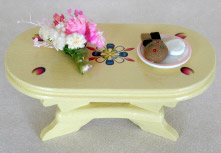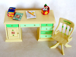 机と椅子です。ここにはランプの照明が 机の上に乗ります。 ピーターラビットの可愛い本も置きました。 |