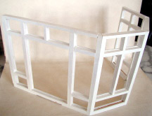 暖炉です。白と薄いピンクの暖炉にしました。 天板には、マガジンラックと同じ模様を付けて 花瓶を飾りました。 |