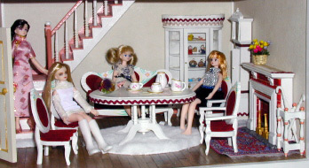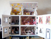 こちらには、コンパクトドール達に 住んで貰いました。 こちらは、ほとんど完成です。 傘立ての傘に色を塗ったり デーブルの小物の入れ替えなんかを しようかな〜とは思ってますが 家具類を増やす事は無いと思います。 もしかしたら、今後照明が届くかも しれませんが、分からないのよ〜(><) |