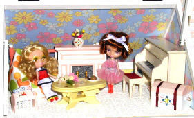ヨ こちらは、プチブライスのお部屋 遊びに来たお友達に、ピアノを披露しようと している所です(*^^*) ちょっと、画像ハレーションぎみ・・・ |