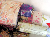 余り布 いらなくなったハンカチとか服を買ったら 付いてくる予備布なんかも使えます。 買うなら柄が細かいのでパッチワーク用の 布が最適。 |