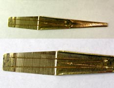 写真2:ベトナム・モン族の真鍮口琴(だったと思う)。棒なしタイプで本体の先をたたく。弁(振動部分)が二股になっている。ちょっと変わった音なのはそのせいか。2500円でした。 |