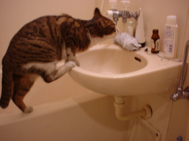 トイレの後は手を洗わないとね!! うにゃ? ジロッ!何か用?
