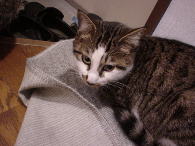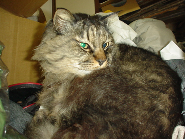 私の瞳は、グリーンアイよ 近くのダンボールの中にいらっしゃいました 作品名「考える猫」 お休み中なのだ・・・