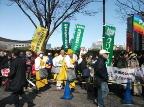 3月9日 (水) ウクライナ反戦アピール「ロシアのウクライナ軍事侵略を弾劾する!」(PDF) 3月5日 (土) 「ロシアはウクライナ侵攻をやめろ! 原発を攻撃するな! さようなら原発 3・5 緊急行動」(主催:さようなら原発1000万人アクション実行委員会)に参加し、「プーチン政権によるウクライナ侵略弾劾! ザポロジエ原発への砲撃弾劾!」と怒りの声をあげました。