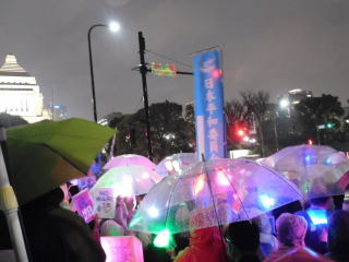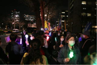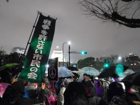 3月25日(水) 「平和憲法を守るための緊急アクション」(主催:WE WANT OUR FUTURE &憲法9条壊すな!実行委員会)に参加しました。 米・イスラエルが、イランとの「核協議」中に卑劣な騙し討ちをして宗教・政治・軍事指導部48名を一挙に爆殺して開始したイラン侵略戦争。米トランプ政権の要請に応えて、高市政権がホルムズ海峡への自衛隊派兵を画策し改憲を日程にのせるなかで、怒りと危機意識に燃えた多くの人々が降りしきる冷たい雨の中を国会前に駆けつけました。20代の若者、とくに働く若い女性を中心に、じつに24,000人以上の労働者・学生・市民が国会前の歩道から国会図書館前までを埋めつくし、思い思いのプラカードを掲げペンライトを振って「戦争反対!」「改憲反対!」「高市倒せ!」と声を上げました。私たちも、参加した人たちに「イラン侵略反対! 日米首脳会談反対! 日本の参戦−自衛隊のホルムズ海峡派兵を許すな! 9条改憲を許すな! 安保法制=戦争法を撤廃しよう! 日米安保条約を破棄しよう! 高市政権をうち倒そう!」と呼びかけました。
