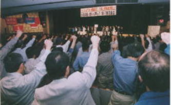 そして参加者は最後に集会アピールを採択し、団結ガンバロウを唱和するとともに、呼びかけ人を先頭とする首相官邸・アメリカ大使館への代表抗議団を編成し、その出発を満場の拍手で送り出したのです。
