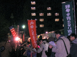 私たち戦争を許さない市民の会は、「ブッシュ政権の武装勢力『掃討戦』という名の大虐殺を許すな!」、「イラク占領反対! 憲法改悪阻止の広範な共同行動をつくりだそう!」と訴えるビラを参加者に配布してアピールしました。 |