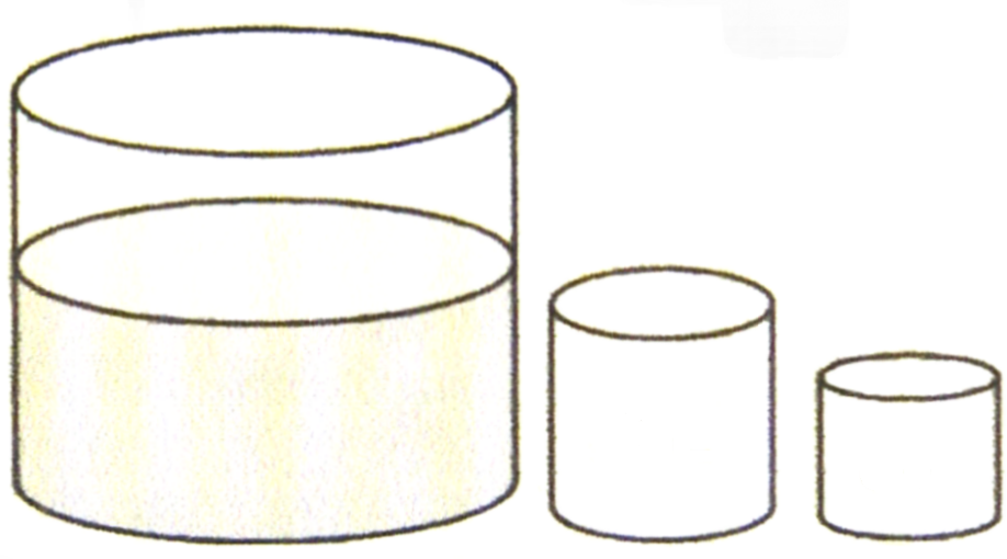 大きな入れ物の中に油が入っています。ここから,「5リットル」の油をくみ出したいのですが,あいにく「7リットル」と「3リットル」の容器が1つずつしかありません。しかも,容器には目盛りがついていません。さて,「5リットル」の油を「7リットル」の容器にくみ出すには,どのような手順をふめばよいでしょうか。ただし,1度くみ出した油を大きな入れ物にもどすのはかまいませんが,途中で油をすてたりしてはいけません。 |