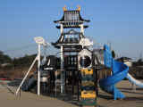 前橋市粕川町にある膳城址公園の遊具コーナーにある天守型の複合遊具。 ZEN城と書いてあります。 |